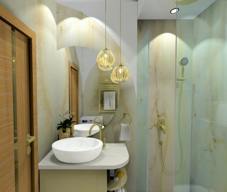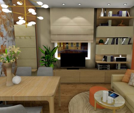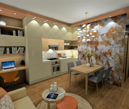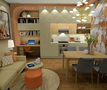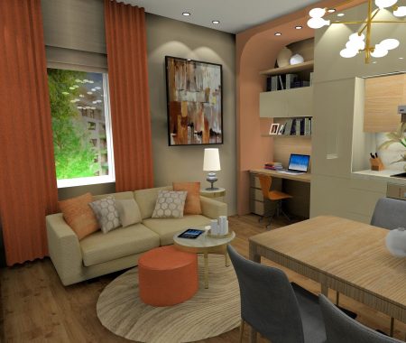Egy szoba-konyha az eredeti alaprajz szerint, de az átalakítás során a konyha bekerült a szobába, és így létrejött még egy kicsi helyiség hálónak. Azon túl, hogy sokkal kényelmesebb otthonná tud válni, minden funkcióval ellátott, és a plusz egy szoba révén az ingatlan értéke is nő.