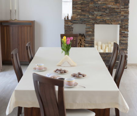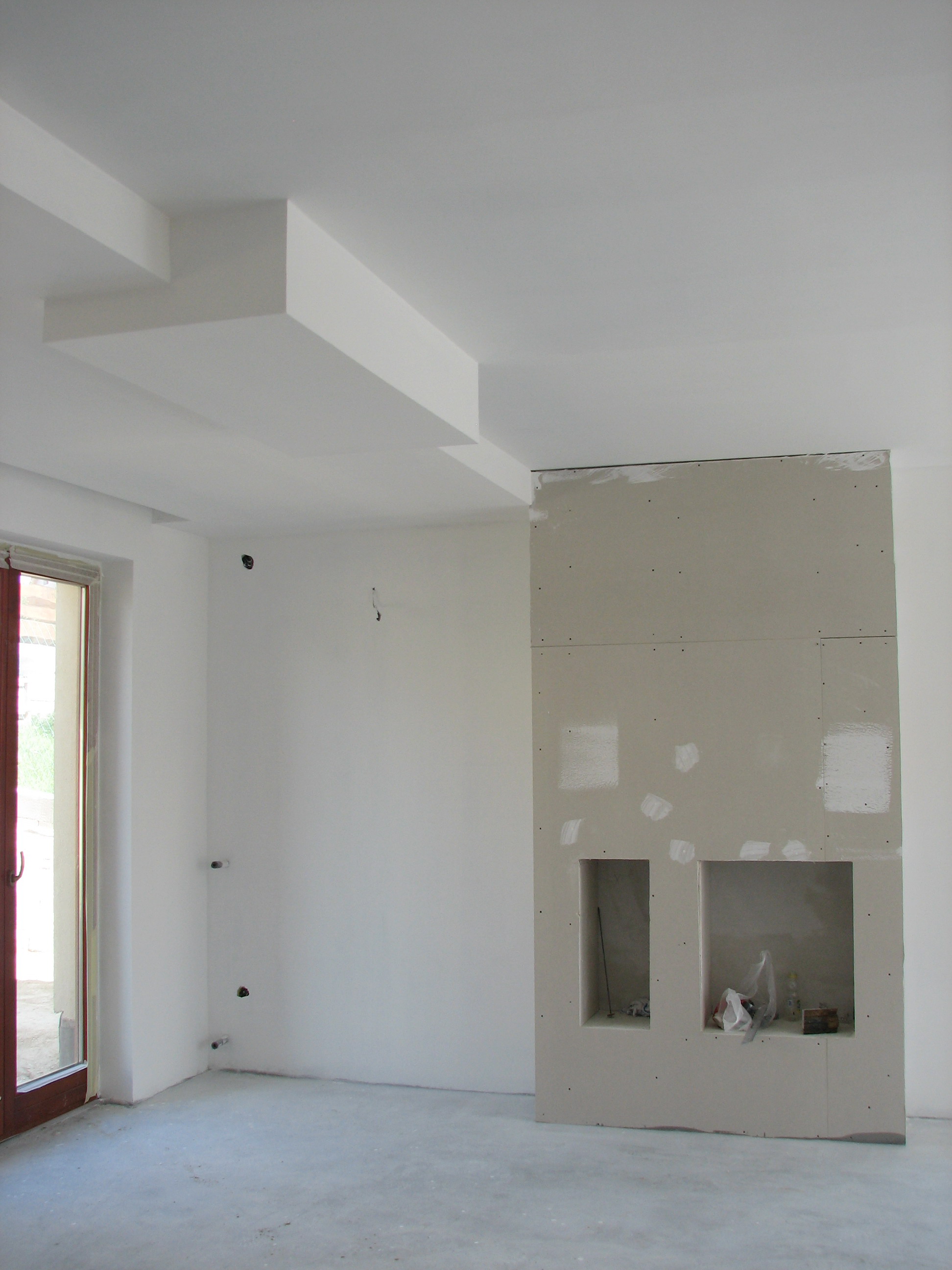 Végül nem épülhetett valódi, fatüzelésű kandalló, ezért egy látványkandallónál maradtunk, de a lehetőséget meghagytuk, ha később mégis belevágnánk.