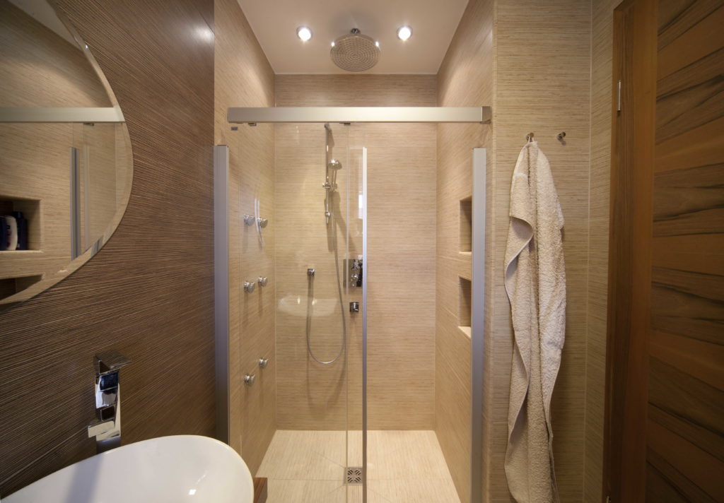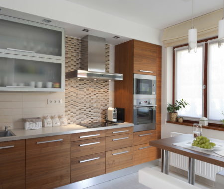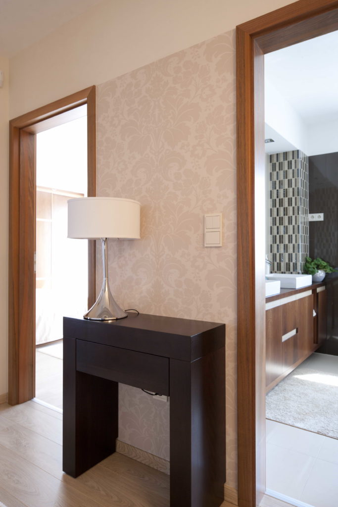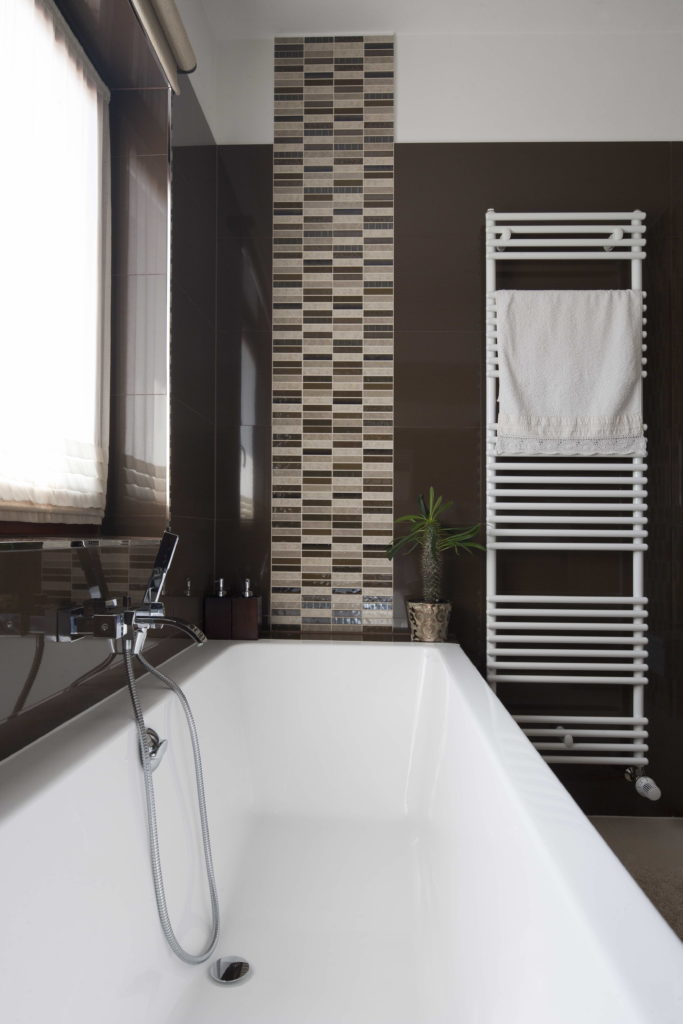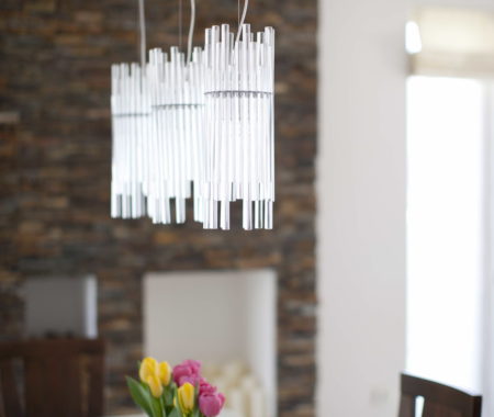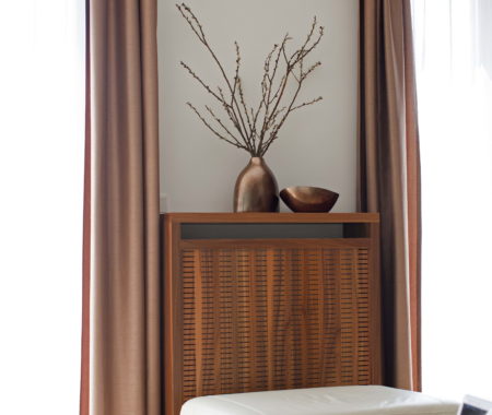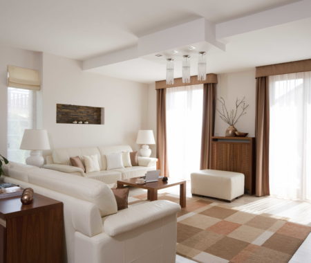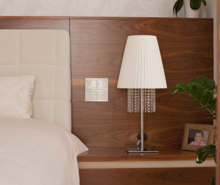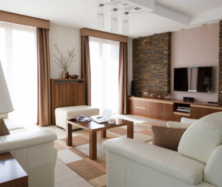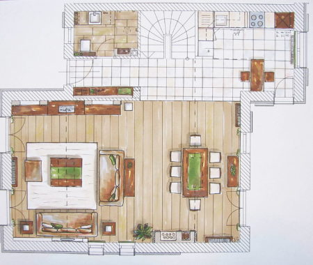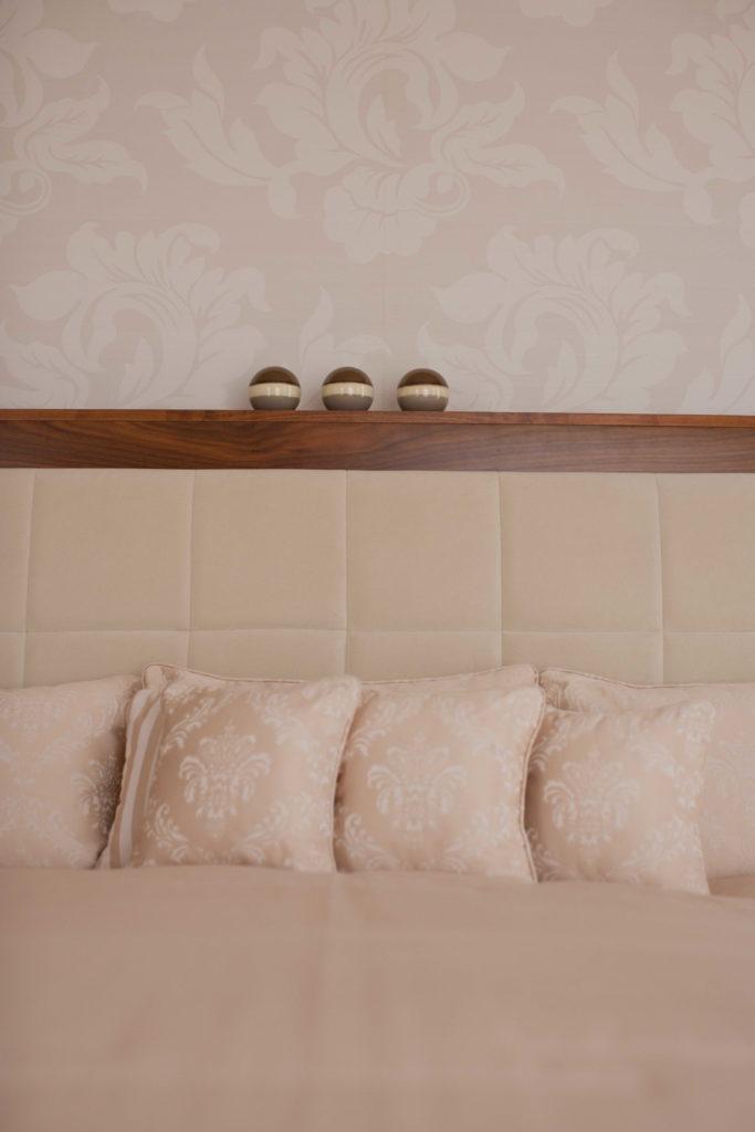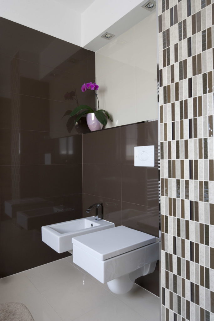 Ügyfelem minimál stílust képzelt el otthonában, de nem a steril, rideg verzióját, hanem barátságosan, elegánsan. Ezek alapján vetettük el a minimálnál kézenfekvő sötét wenge felületeket, és inkább egy melegebb, időtállóbb fát, a cseresznyét választottuk, amit sokszor méltatlanul mellőznek, kissé konzervatív hangulata miatt. Ennek elkerülése végett modern, egyenes vonalú, letisztult vonalvezetésű bútorokat terveztem, minimumra csökkentve a részleteket. Továbbá természetes palakővel, bronzos kiegészítőkkel, mozaikokkal és finom tapétával gazdagítottuk a látványt.