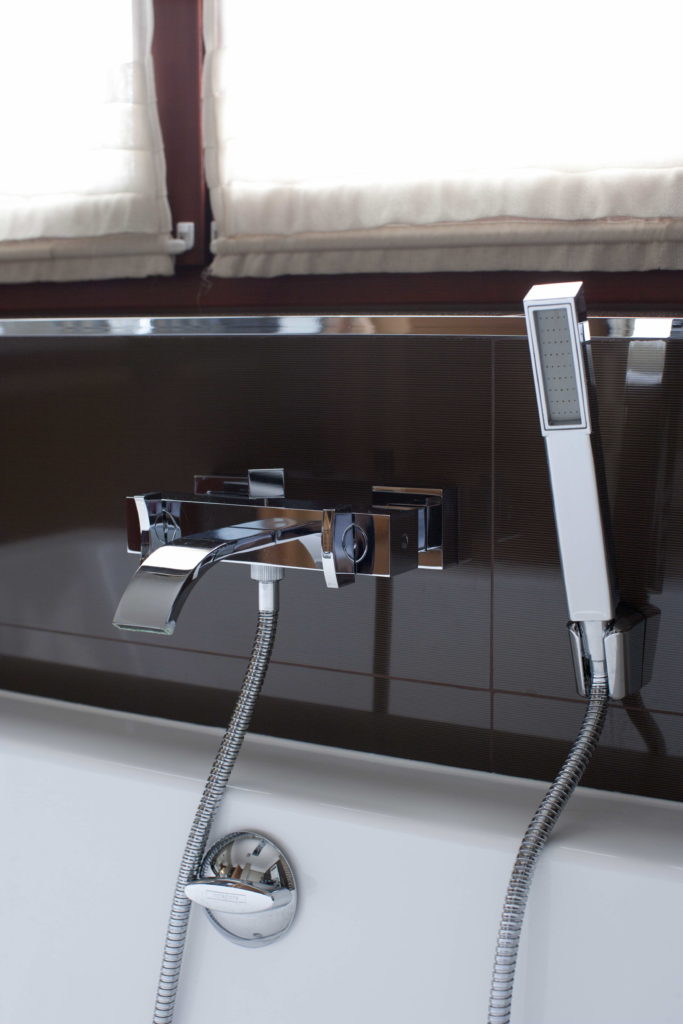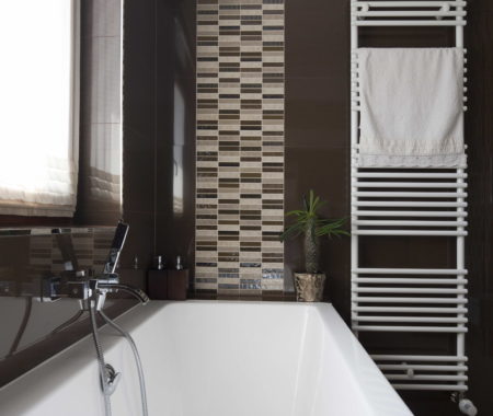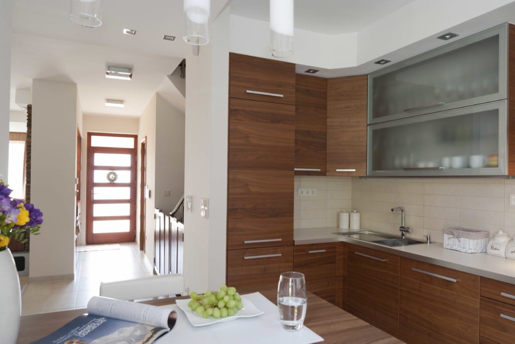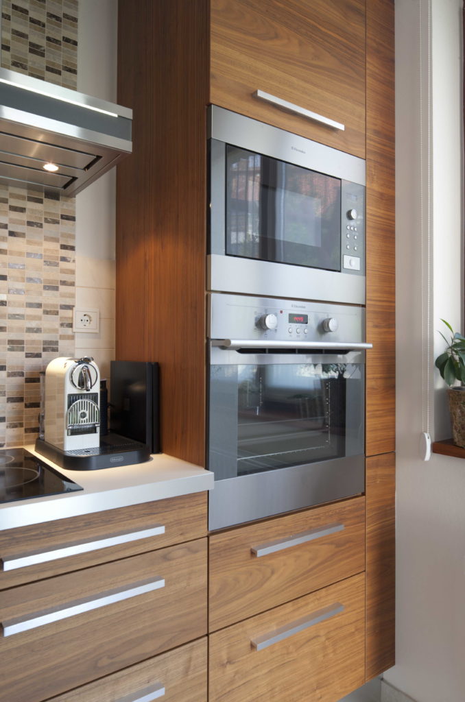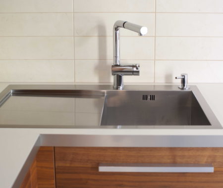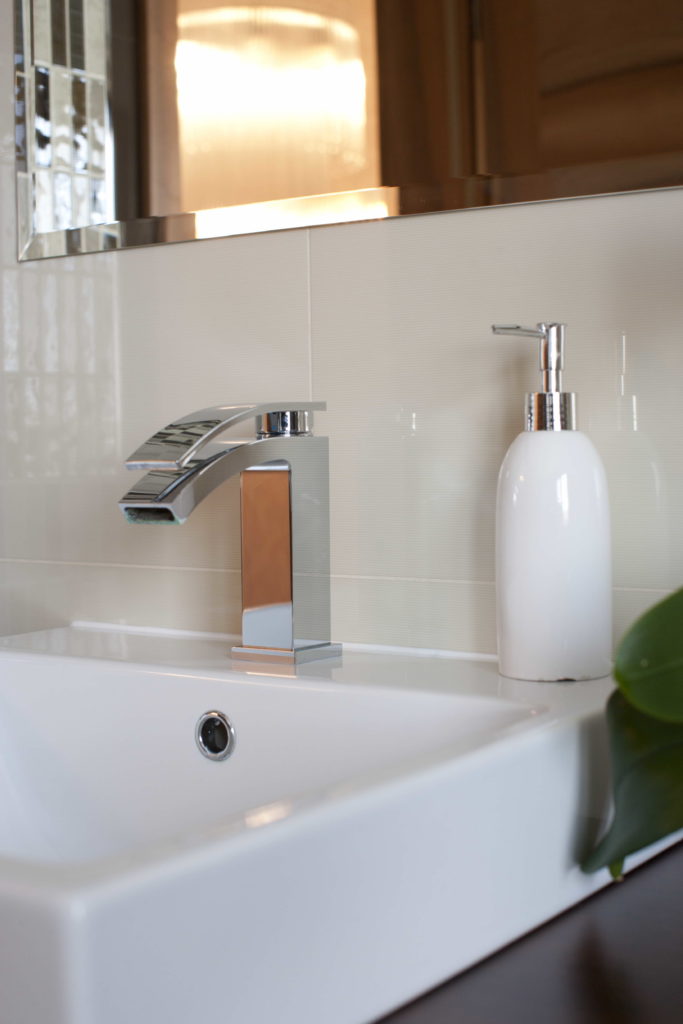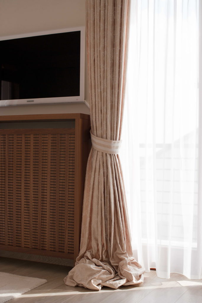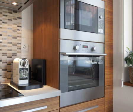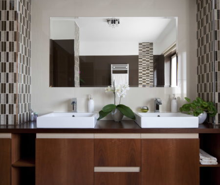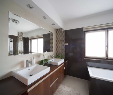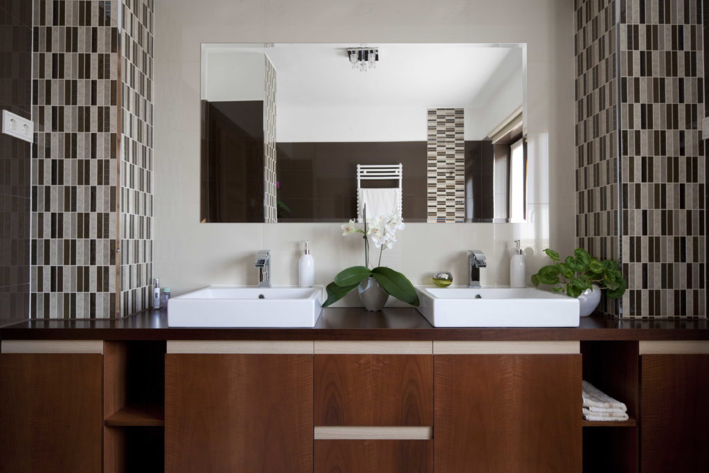 Ügyfelem minimál stílust képzelt el otthonában, de nem a steril, rideg verzióját, hanem barátságosan, elegánsan. Ezek alapján vetettük el a minimálnál kézenfekvő sötét wenge felületeket, és inkább egy melegebb, időtállóbb fát, a cseresznyét választottuk, amit sokszor méltatlanul mellőznek, kissé konzervatív hangulata miatt. Ennek elkerülése végett modern, egyenes vonalú, letisztult vonalvezetésű bútorokat terveztem, minimumra csökkentve a részleteket. Továbbá természetes palakővel, bronzos kiegészítőkkel, mozaikokkal és finom tapétával gazdagítottuk a látványt.