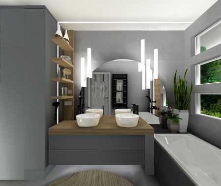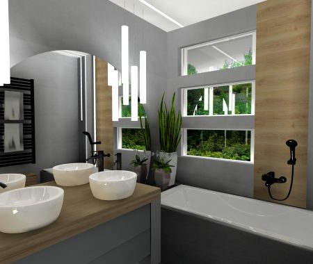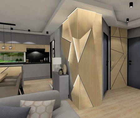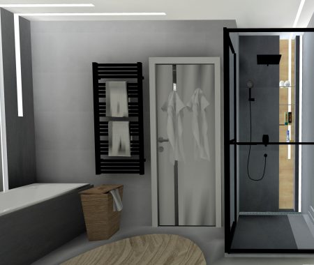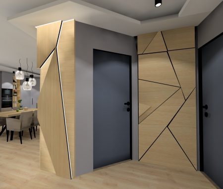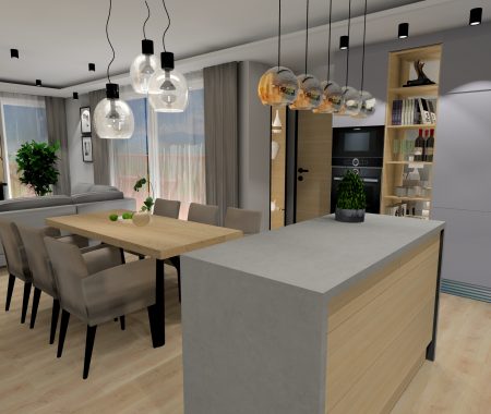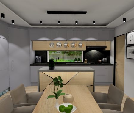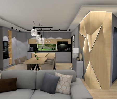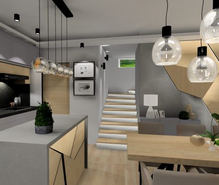 Nemsokára kezdődik a kivitelezése ennek az ürömi családiháznak, ahol ügyfeleim a jégtábla motívum szerelmesei, ezt szerették volna viszont látni a terekben. Hogy ez a motívum ne legyen kemény és éles led fényekkel lágyítottam a domináns helyeken. Továbbá a meleg szürkék és a világos natúr fa felületek tovább puhították a minimál és a jégtáblák szigorúságát. Kíváncsian várjuk a megvalósulást,