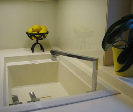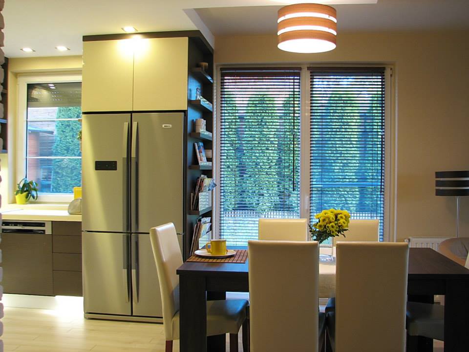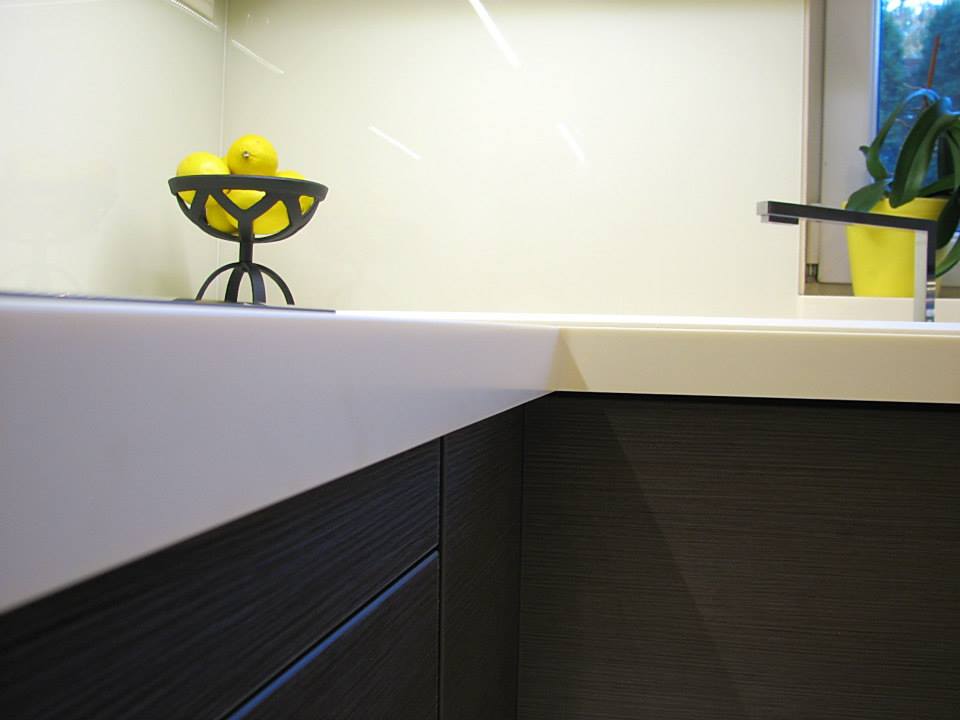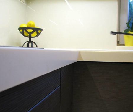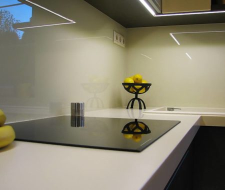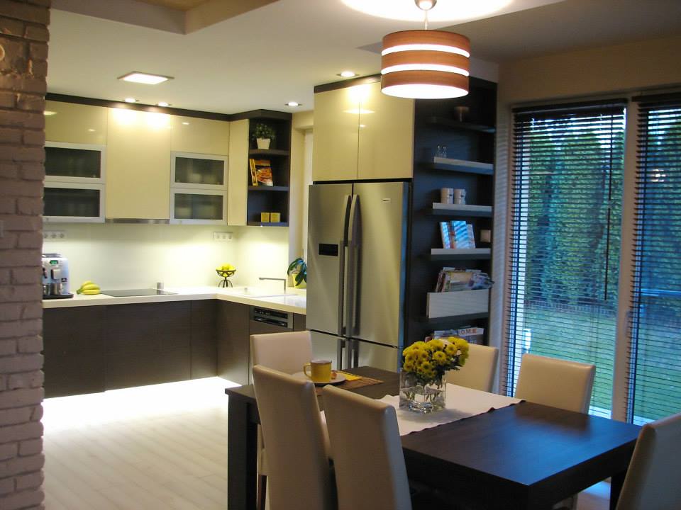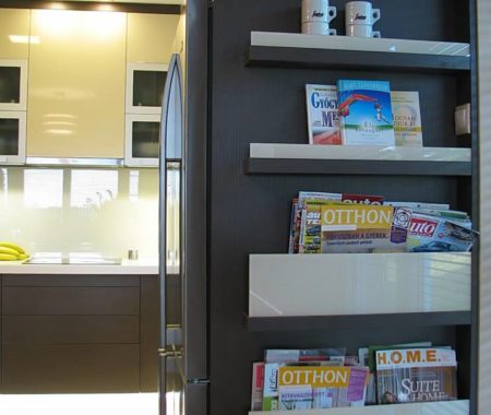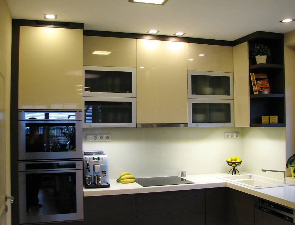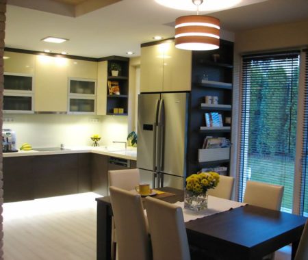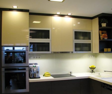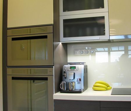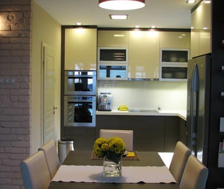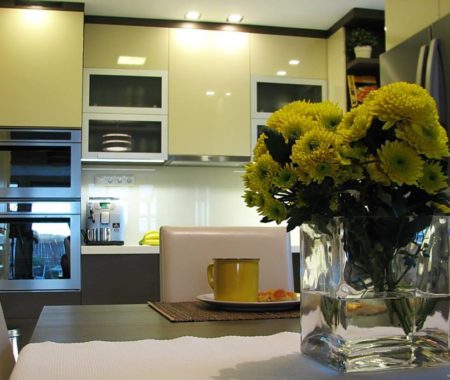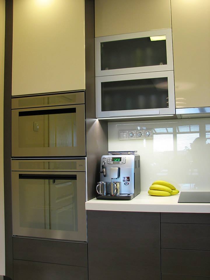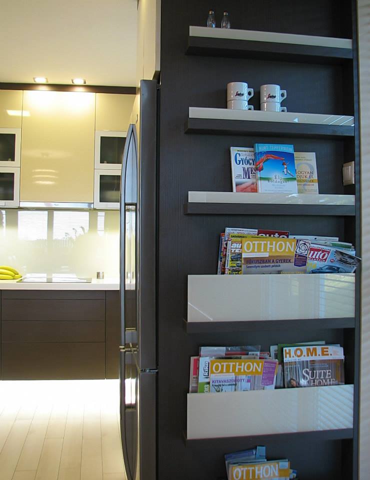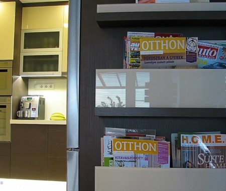 A munka eredetileg egy polcos elem kicserélése lett volna, de aztán elkapta ügyfelemet a megújulás vágya, én pedig örömmel támogattam ebben. A konyha-étkező-nappali egységből a nappali már elkészült, ehhez kellett alkalmazkodnom. Minimál stílus, bézs és föld színek. Azonban, hogy egy kicsit elkülönüljön a konyha egysége a többi területtől; napsárga kiegészítőkkel erősítettük fel a halványsárga, magasfényű frontokat és a bézs üveg hátfalakat. A minimál is lehet vidám.