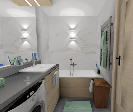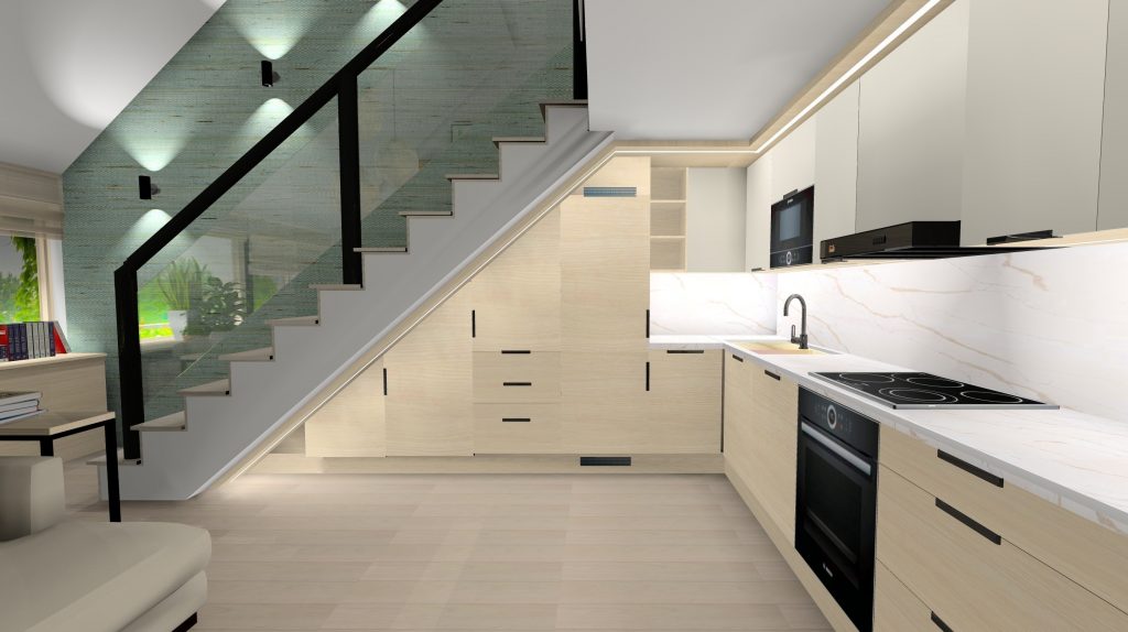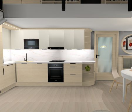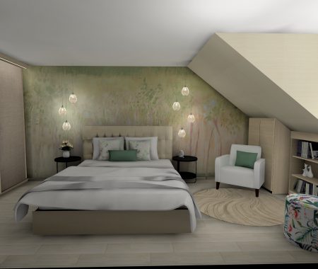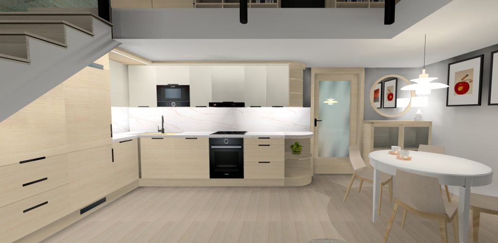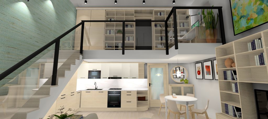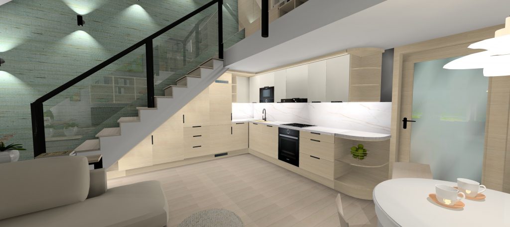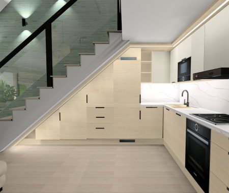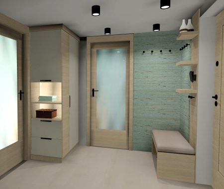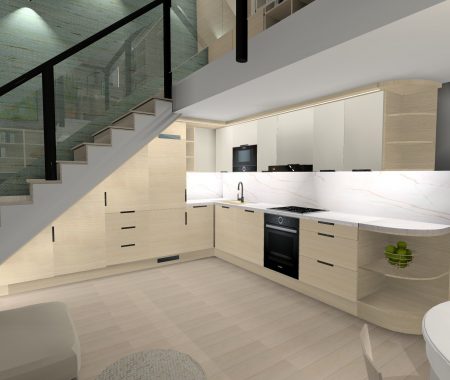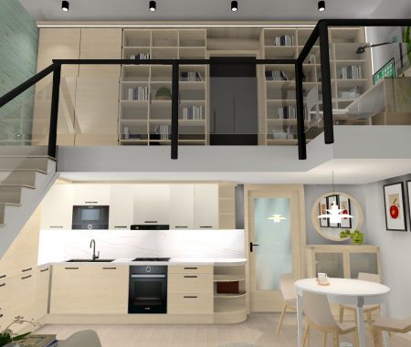 A Várban futó projekt egy belső kétszintes lakás felújításáról szól. A tervek 2025ben készültek, jelenleg; 2026 tavaszán folyik a kivitelezés. A megrendelő a skandináv letisztult stílust kedveli, mentazöldekkel, finom, világos árnyalatokkal.