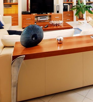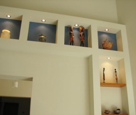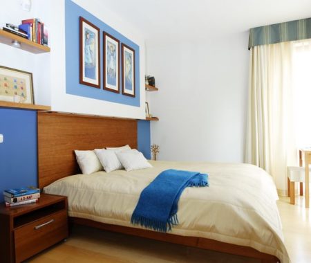 Ügyfeleim új, modern berendezést szerettek volna, de oly módon, hogy egyben időtálló is legyen. Emiatt a minimálhoz kapcsolódó wenge felületeket elvetettük, és ehelyett a klasszikusabb cseresznye fával kombináltuk a gipsztkarton szerkezeteket. Mindezt pedig tengerkék falfestékkel és kiegészítőkkel frissítettük fel, amely kissé délszaki hangulatot kölcsönöz a tereknek, mintha egy végtelen nyaraláson lennénk.